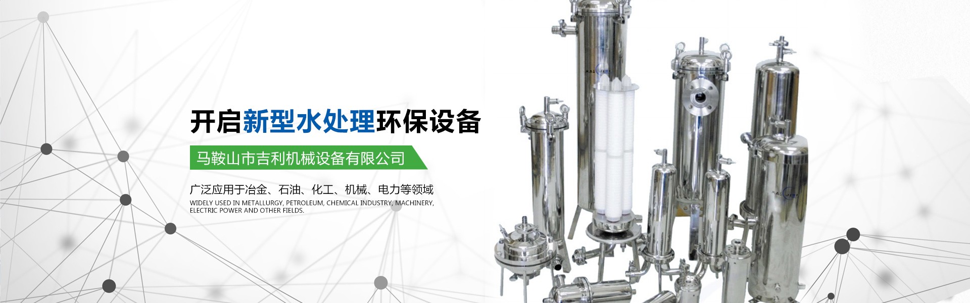 馬鞍山市吉利機(jī)械設(shè)備有限公司位于江南名城一馬鞍山市,交通十分便利。公司具有獨立法人資格,是集水處理設(shè)備的研發(fā)、設(shè)計、生產(chǎn)、銷售為一體的專業(yè)型企業(yè)。公司的主要產(chǎn)品有高中速過濾器、纖維球過濾器、新型除油過濾器、無閥過濾器、加藥裝置、管道全自動過濾器、淺層砂過濾器、攪拌機(jī)、沙水分離器、管道靜態(tài)混合器、化水設(shè)備、反滲透等膜處理設(shè)備、空氣過濾器等。公司所研發(fā)的產(chǎn)品有占地少、處理效果好、投資省、操作管理方便的優(yōu)點,受到客戶的一致好評。